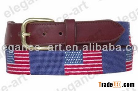 Needlepoint American Flag Stitching Belt with Leather