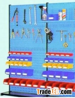 Store tools and small parts, utilized in workshops, tools rooms and parts warehouses. Shutter hanging board with back hanging component boxes, and square hole hanging board with many different hooks, could store tools and parts based on different sorts. Use the space fully and raise the efficiency, realize placement and visual management. Various, flexible, module assembly structure, convenient to assemble and disassemble, suits different work situations.
