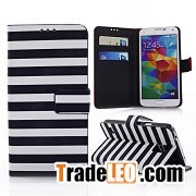 Horizontal Stripe Pattern Wallet Style Magnetic Side Flip Stand Leather Case for Samsung Galaxy S5 I9600 With Slots•Compatible with:Samsung Galaxy S5 I9600