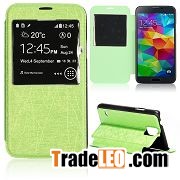 Caller ID Window Foldable Flip Stand Texture Leather Case for Samsung Galaxy S5 I9600
