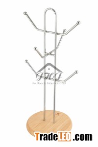 Iron Mug Tree, Mug Holder W/ Wooden Base