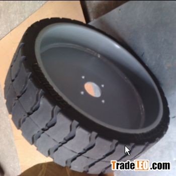 Cured-on solid tyre for platform lift: