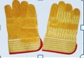 yellow cowhide split leather patched palm glove,stripe cotton back and pasted cuff,half liningyellow cowhide split leather patched palm glove