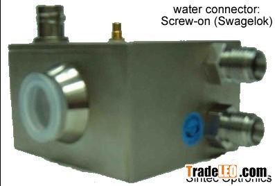 A water-cooled acousto-optic Q-Switch for use in high-power Nd:YAG laser systems. Combining top grade fused silica with high quality optical finishing and in-house anti-reflection coatings, this Q-Switch exhibits very low insertion loss and high damage threshold. Through an innovative design and manufacturing process, RF powers up to 100W may be applied. Q-switch