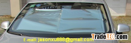 Description: The main material is silver aluminium foil,the product can roll up by itself,the size is much smaller than regular sun shades,and more easy to operate.