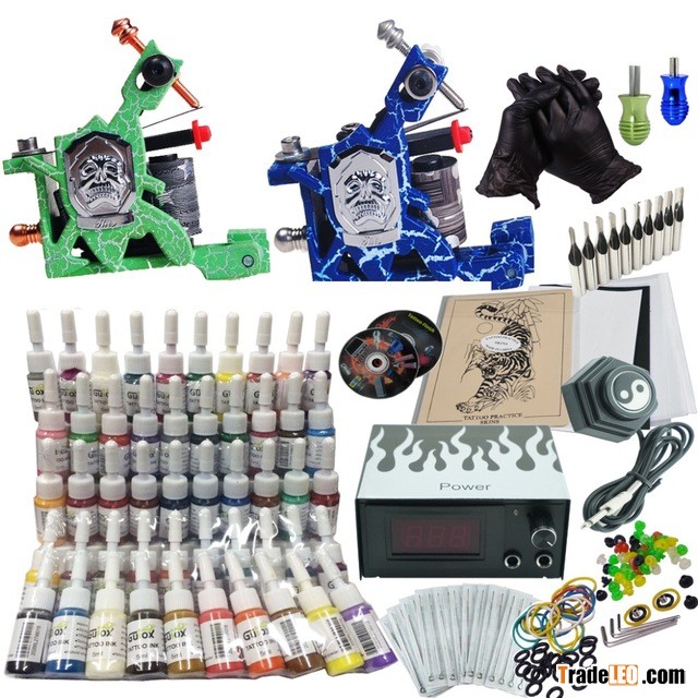 2 Tattoo Machines 54 Ink Flame Tattoo Power Supply Tattoo Kit D192