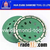 Product Name:Diamond double row cup wheel for stone concrete polishingBrand:Huazuan or OEMType:Diamond cup wheelCompose:Diamond and metalFeature:Silver brazed double row grinding wheel is ideal for beveling, smoothing and shaping.Specification:1.Diameter: 3"-9"2.Bore:16mm, 22.23mm, M14, others can be designed. 3.Segment width: 5mm 4.Segment height: 7mmApplication:Granite, marble, concrete products, masonry material and all types of natural stoneMachine:Angle grinder. Quality Control:1.Strict Raw material inspection. 2.Professional formula. 3.Production process control (PDCA + 7S Principle) 4.Diamond Double Row Cup Wheel For Stone Concrete Polishing