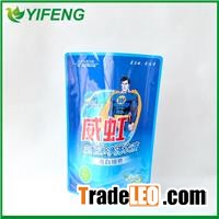 Product Description:Washing powder bagUsage: Water Washing powder.liquid,Website:http://www.printstandupbags.com,LaundryDetergent,Oil, etc or othersGrade: Food GradeMaterial: PET/VMPET/PE; PET/PA/PE, PET/AL/PE, PET/PA/VMPET/PE, etc.Thickness: 60-160mic.Printing: gravure printing Colors: 10 colors MaxSurface: Shiny or Matte finishingSample: Free (freight paid by customer)Lead Time: 15-20 daysBag Size: 0.2kg/0.25kg/0.5kg or othersMOQ: based on the size of bag(often 30000pcs)Feature:1)Non-Ketene, Non-Benzene ink, non-odour, low solvent retained2)Non-leakage, excellent moisture-proof, anWashing Powder Bag