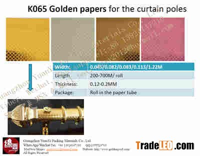 K065 Golden papers for the curtain polesCurtain rod paper / golden paper/ golden PVC paper / PVC film/ self-adhesive paper/Golden sticker for the curtain rod/curtain pipe/curtain tube coating paper / PVC coating film paper for the curtain rod can be coating on the iron/aluminium/steel pipe or tube to be the curtain poles by hand or by machine
