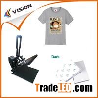 If you needmake iron on transfers VisionInkjet heat transfer paperis your best choice There is light anddark shirt transfer paper . Light t-shirt printing paperare for white and other light colors of fabric. Dark heat transfer paperare for dark colors fabrics TheseIron on transfersare great for t-shirts, and once you know how to apply your own custom images to fabric using your home Inkjet printer with pigment inks and a regular iron or heat presson transfer sheets, the possibilities are endless! You can customize fabric with a favorite photo or quote, be as creative as you dare. ItemInkjet Heat Transfer Paper( light and dark)