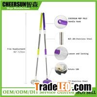 Product DescriptionRotating mop handle& telescopic poles& magic mop rodItem: ZS-JPMaterial and size:Pole material: 0.4mm Steel & PP.ABSPole diameter:25/22mmS/S Model :201#Hand press pole type: TelescopicPole Scale range: : 0.86-1.3mDisc : 2 kinds Plastic or Stainless steel Packing: 50pcs/CartonPlace of origin: Zhejiang,ChinaFeatures:1.Never touch,dring and easy washing system2. Telescopic handle to adjust to height and extend reach3.New design lock system: left&rightOur Services1.Custom color or logo printing available.2.in bulk packing. Custom packing available3.sample is free,but express cTelescopic Poles