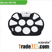 Roll Up Drum Kit W758SpecificationPrice(USD): Qty:1000PCS 14.5USD/PCSMaterial: Non-toxic and harmless environmental protection silicone, 100% waterproof Color: Black Or OEM colorInput: DC5V /1000 MAWeight:(1pc) N.W.:368g/pcs G.W.:815g/pcsG.W.:(1ctn) 11.3kgCarton Size: 12pcs/ctn 51.8(L)*33.3(W)*28.7(H)cmPacking List: 1 x Electronic drum 2 x Drum stick 1 x USB cable 2 x Foot pedal1 x User manual Dimension: 380mm x 270mmFeatures1.Can play with speaker or headphone2.Up to 9 pad including Bass Drum, Tom, Snare, Hi-Hat and Crash Cymbal3.With rhythms and demo songs inside4.With 6 diffeRoll Up Drum Kit W758