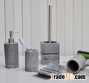 the field of bathroom accessories and craft product of polyresin,Items including: Soap dispenser, Toothbrush holder, Tumbler, Soap dish, Toilet Brush with holderCotton Jar,Tissue Holder, Waste Bin, Tray