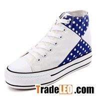 Model No: XS033-2Gender: WomenUpper Material: CanvasLining Material: Cotton FabricInsole Material: EVAOutsole Material: Vulcanized RubberStyle: Lace UpColor: Black,Website:http://www.shimso.com,White,Navy Blue,RedSize: #35-39Season: Spring,Summer,Autumn,WinterType: Fashion SneakerMOQ: 1200 Pairs One Color,2400 Pairs Two Colors At LeastPayment Terms: T/T,Western UnionDelivery Time: 5-7 Workdays After Receiving DepositPacking: One Pair One Box,30 Pairs To An Outer Carton Or As Client Requirement.Special Description: Girls canvas shoes constructed with comfort and convenience in mind, you'll makeGirls Polka Dot Canvas Platform High Top Walking Sneakers Multi Match Platform Shoes