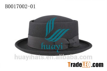 Pure black men's wool felt pork pie hat