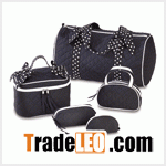 $29.95 Plus $7.95 S&H The traveling season's here at last— take your essentials on the road with this kicky designer soft-luggage set! It's black-and-white styling is bold and fresh; gingham lining and polka-dot bows add fabulous feminine fun! Matching set includes everything you need to stay organized on the move: 9 7/8" diameter x 17 3/4" long duffle bag; 9" x 5 1/4" x 4" high cosmetic bag; 8" x 2" x 4 3/4" high handled bag; 4 3/4" x 2 1/8" x 2 3/4" high coin bag; 6 3/4" x 2" x 2 1/2" high mini square bag. Polyester fabric. Set of 5Polka Dot Travel Bag Set #38729