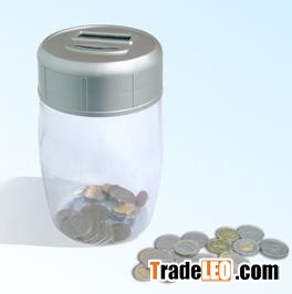 1, This Coin Counter Bank counts every coin when you deposit them. Displays a running total of your savings so you'll know exactly how much you have. A fun and educational way to teach children how to count and save. Top twists off for easy access and re-sets to zero to start all over again. 2, 10 minutes to sleep after coin stop