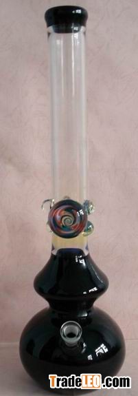 Two balls of glass bong was made by using excellent black tubing. And there is a beautiful decoration and a few marbles on the middle of bong. Very beautiful. You will be amazing about it.glass bong