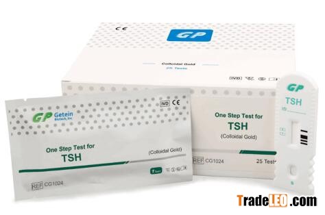 Intended UseOne Step Test for TSH (Colloidal Gold) is intended for in vitro quantitative determination of thyroid-stimulating hormone (TSH) in serum, plasma or whole blood. This test is used in the screening, clinical diagnosis, prognosis and therapeutic effect evaluation of thyroid diseases.