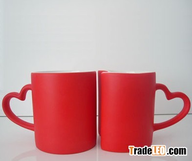 Ceramic lovers couple mug for valentine's day Material: ceramic Capacity:11oz Design:full color Dishwasher microwave safe Effective: The color or design of mug will change after pouring hot water or cold water. The mug has one method of changing,either changing while hot water pour in or cold liquid pour in. We can print any colors and any printings you want.Red color changing mug