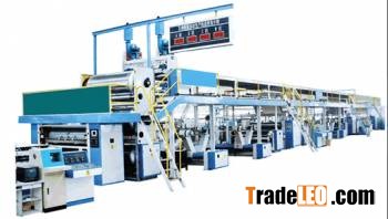 Complete corrugated cardboard production line consists of shaftless mill roll stand, fingerless type single facer, preheater, conveyer bridge, pasting machine, double facer machine, cut off machine, slitter scorer machine, stacker and glue making system. 3-layer,5-layer,7-layer production line are all avalaible.