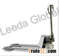 All parts are made of stainless including hydraulic pump, fork frame, handle, push rod, bearing, pin and bolt, etc. For use in meat and other food industry, dairy canning and all areas where corrosive acids and saline solutions are used.