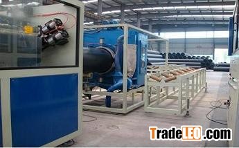 This line is mainly used to produce HDPE pipes for water and gas supply. It has characteristics of low energy consumption and noisy, high output, smooth operation, and long useful-life. And the design can ensure the stability of diameter and roundness when producing the pipe with thick wall.This production line is mainly composed of Autoloader and dryer, vacuum calibration tank, water cooling tank, haul off machine, cutter and collection stacker.