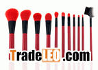 bright red wooden handle makeup brush set