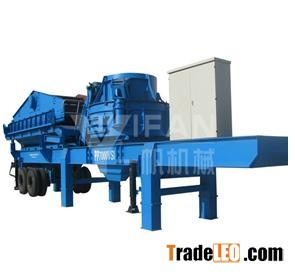 Vertical impact mobile crushing plant is widely used in road and bridge construction,city construction,metallurgy,energy and other departments to implement crushing and screening process.Characters of Mobile VSI Crusher: