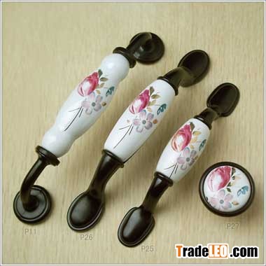 Zinc alloy Tulip ceramic door knob cupboard door handle