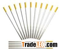 Lanthanum-tungsten electrode is the electrode of tungsten added with 1.5% of La2O3. Impurities content: less than 0.2%. Tungsten content: balance. Color sigh: golden yellow (WL15). Lanthanated Tungsten is nonradioavtive materials with good welding performance . Its electric conductivity is most closed to that of 2%Thoriated Tungsten. Welders can easily replace Thoriated Tungsten Electrodes with Lanthanated without any changes of welding program. In Europe and Japan, Lanthanated Tungsten has been the most popular alternative to 2% Thoriated tungsten for most applications. This tungsten is used primarily for DC welding but will also show good resulis for AC welding.Lanthanated tungsten electrode