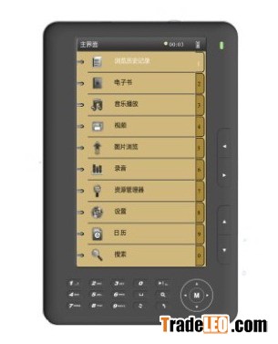 7 inch TFT panel, 800*480 Text: TXT,DOC,PDF,PDB,FB2,EPUB,HTML