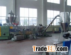 Wood plastic compound granules production lineThis line could apply to PP, PE, PVC, ABC, PS with many kinds of plant fiber (wood powder, rice shell, bamboo, etc), fiber glass to strengthen WPC pellet.