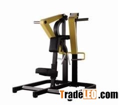 This machine replicates the pulling movement towards the chest and the chin at the end of the exercise, activating the latissimus dorsi and the middle and upper trapezius.