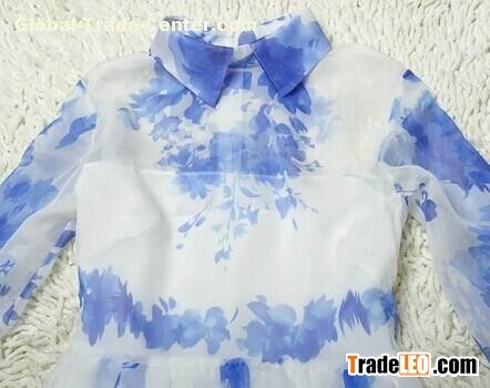 Hot sale chiffon dress white with blue China dress oem service