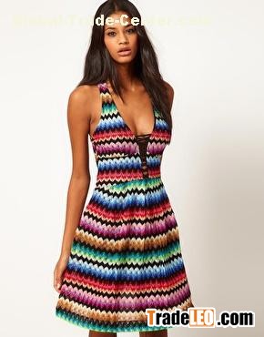 Wholesale bohemian dress with v-neck fringe printing factory price