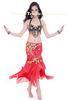 Red Milk Silk Chiffon Turkish Belly Dance Performance Costumes with Shining Coins