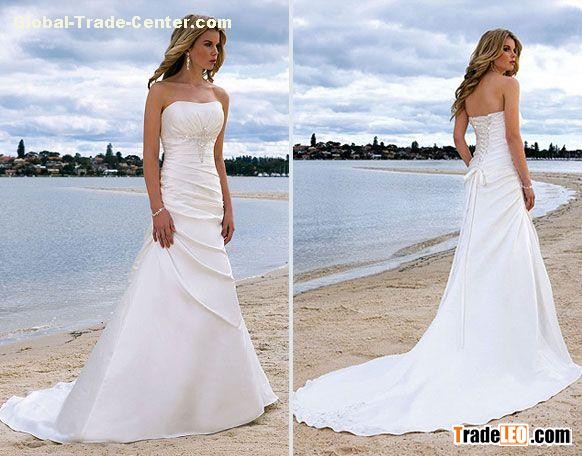 good price stunning quality embroided soft satin chapel train strapless bridal wear wedding gowns