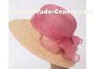 Light Blue 11cm Straw Braid Brim Womens Church Hats / Sinamay Crown Hat For Banquet