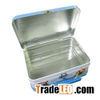 Rectangular Lunch Tin Box-2In USA, there is a good sales luch tin box. It can be used to pack many kinds of goods such as cake, cosmetics. On the requirements of an USA client, Tin Men United Tin Can Manufactory Co.,Ltd makes this lunch tin box.This tin box is made up of 3 tinplates(lid, body and bottom). The body and bottom are the same. The body is rolled into a round corner rectangular. The bottom is selaed on body by four nails. One side of lid is sealed on body by hinges. The other side can be closed and opened by lock. On body, there is a handle. People can take it by handles. The embossRectangular Lunch Tin Box-2