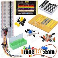 Electronics fans package E including:1pcs High Quality Retail Box1pcs 830pts breadboard50pcs/pack jumer wires10pcs of each 5mm LED(Yellow, Red, Blue, Green)1pcs 5mm RGB LED1pcs resistor card10pcs of each resistor (220R, 1K, 10K)10pcs 10NF ceramic capacitor10pcs 100NF ceramic capacitor5pcs 100UF aluminum capacitor2pcs Ball Switch2pcs 103 thermistor2pcs 5mm LDR2pcs Diode 1N40071pcs Acitive buzzer1pcs passive buzzer1pcs flame sensor1pcs 4 digital tube1pcs 1 digital tube1pcs 8*8 matrix dot digital tube1pcs LM35DZ1pcs 74hc595N4pcs button switch1pcs SG901pcs 10K potentiometer1pcs 1*40 pin header1pcsElectronics Fans Package E