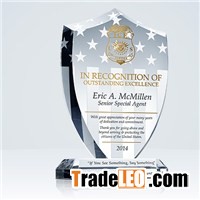 Welcome to wholesale high quality law enforcement shield plaque with our company - one of the most reliable law enforcement shield plaque manufacturers and suppliers in China.PRODUCT DEscriptIonElegantly crafted to resemble a shield or badge, the Law Enforcement Shield Plaque makes a beautiful statement. The stars and stripes that are frosted into the crystal set the tone right from the start. And the sturdy base so effortlessly supports the piece that you can basically guarantee is will be displayed in a prime spot.The sample layout is designed as an ICE Officer Recognition Plaque and honor tLaw Enforcement Shield Plaque