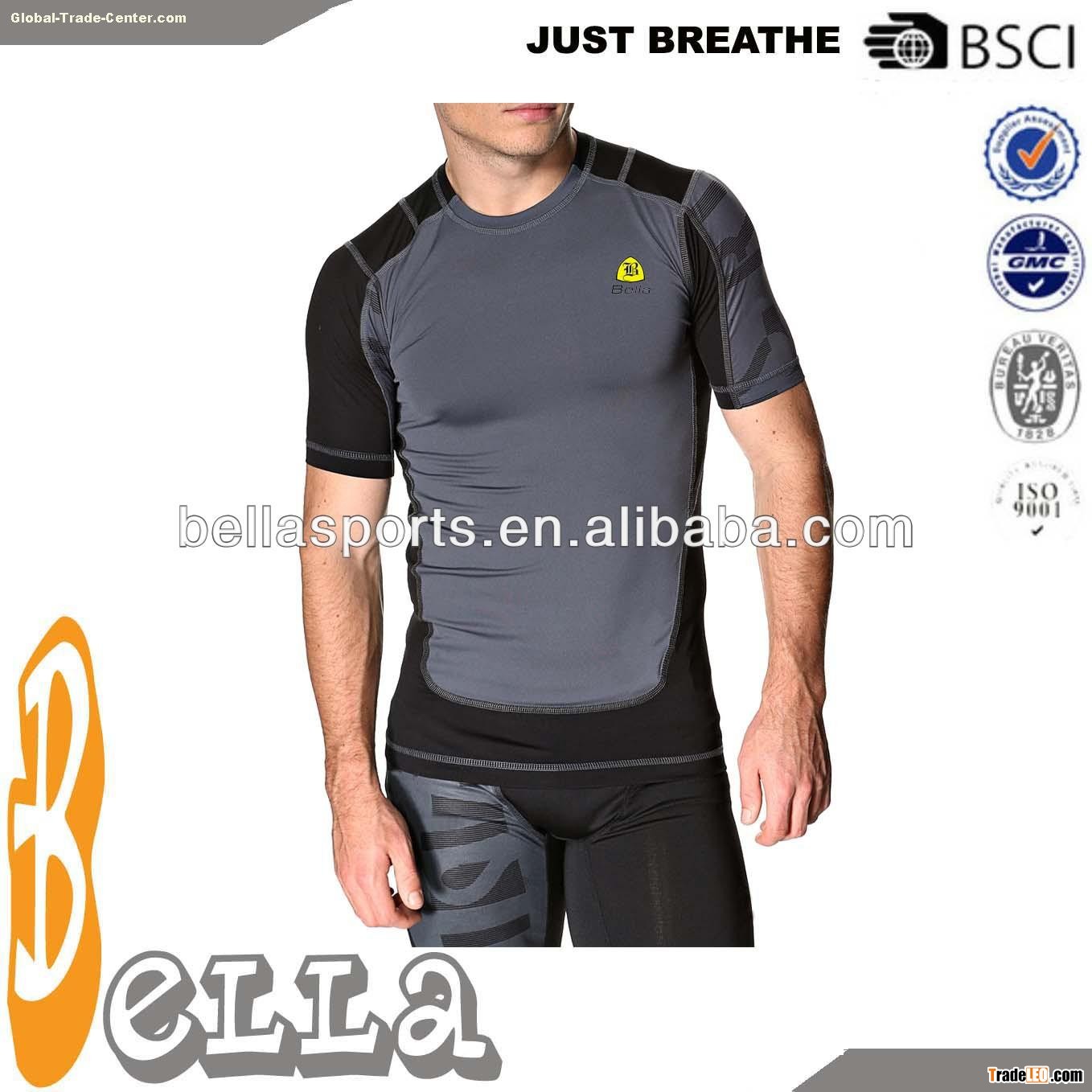 2014 newest men's running t-shirt slim fit shirt with insert on both sides