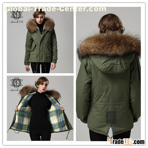 2015 Military style parka with raccoon hood men fur coat