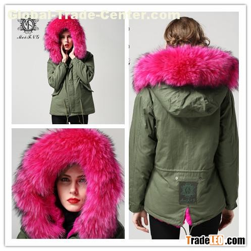2015 Military style parka with raccoon hood men fur coat