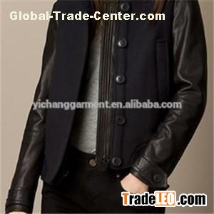 Women Wool Blend Bomber Jacket With Lambskin Sleeves,Website:http://www.ychgarment.com,Women Bomber Jackets