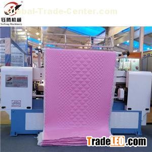 Yuteng Machinery is one of the best China ygb64-2-3 jackets quilting machine manufacturers,Website:http://www.yutengquiltmachinerys.com, welcome to wholesale cheap ygb64-2-3 jackets quilting machine, high speed quilting machine, high speed lock stitch multi-needle quilting machine for jackets from our factory.“YuTeng Machinery” is professional Manufacturer in High Speed Quilting Machine,Multi-needle Quilting Machine,Computerized Qulting Machine,Chain Stitch Quilting Machine,Lock Stitch Quilting Machine,Mattress Machine,Bedding Quilt Machine,Jackets Garment Textile Quilting Sewing machine,Provide over sea after-service,Arrange engineer to customers country for installtion and training .YGB64-2-3 High Speed Lock Stitch Multi-needle Quilting Machine for JacketsQuilting Machine Purpose: It is widely for quilting high-quality jackets garments, bedding covers, textile, leather, shoes, cap, bags, vanity, gloves, sleeping bag, seat cover ,mattress covers, straight lines quilts, square quilts, diamond quilts and Wall decoration etc.Machine main features1. Adjusted speed by computer and the speed can reach 800r/min2. Full thread breaks detection for threads 3. Saddling rack and roller are driven by servo equipment, Principal axis adopt the frequency conversion device.4. Saddling rack adopt high rigid design of sewing embroidering machine ,Adopt separation structure of convey cloth rack and moving saddling rack, effectively reduce the load and jitter of saddling rack. 5. Adopt double clutch device, effectively solve the synchronization problems of (Front and back) rollers.6. Adopt high precise and high rigidity import screw rod 7. 360° random quilting and limitless multi-span and independent quilting.8. Advanced and practical testing upper thread broken techniques, the machine is auto-stop when thread is broken.9. Infrared sensor makes the operation more secure.10. Stable operation, low noise, high precision, few break line, easy operating.11.The needle bar running adopt aluminum alloy needle bar frame structure, don’t need to add extra lube, strong and durable.Technical Specification:YGB64-2-3 High Speed Lock Stitch Multi-needle Quilting Machine for JacketsModelYGB64-2-3YGB76-2-3YGB96-2-3YGB128-2-3Size(L*W*H)(mm)3800*1100*18004000*1100*18004900*1100*18005700*1100*1800quilting width1650mm1930mm2450mm3300mmquantity of needle bar2222space between needle bar76.2mm76.2mm76.2mm76.2mmspace between needle25.4mm25.4 mm25.4mm25.4mmX-axis movement254mm254mm254mm254mmthickness of quilting≤25mm≤25mm≤25mm≤25mmspeed of operation(m/hour)20-12020-12020-12020-120model of needle16 #, 19 #16 #, 19 #16 #, 19 #16 #, 19 #stitch length2-6mm2-6mm2-6mm2-6mmquilting speed(r/min)300-800300-800300-800300-800Voltage380V/220V/50HZ380V/220V/50HZ380V/220V/50HZ380V/220V/50HZTotal power3.5Kw3.5Kw4Kw5.5Kwgross weight3300Kg3500Kg4500Kg5300KgFeature Icon:Quilt Pattern Show “YuTeng Machinery “factory Exporting Computerized Quilting Machinery to customers If you are interested in Jackets Quilting Machine, YGB64-2-3 Jackets Quilting Machine, High Speed Quilting Machine, YGB64-2-3 High Speed Lock Stitch Multi-needle Quilting Machine for Jackets, don’t hesitate to contact with us.