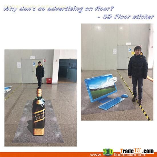We have a lot of posters, labels in the supermarket; that is not our trouble. The 3D floor sticker can be designed according to the theme of market.