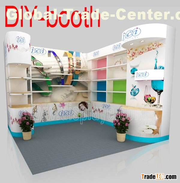 now! custom most Green&Eco Friendly and easiest self-assembly trade show stand solutions, save money on your island,inline,corner trade show displays or 10x10,10x20,10x30,20x20,20x30 trade show booth displays ...and so on , all size trade show booth stand in box.