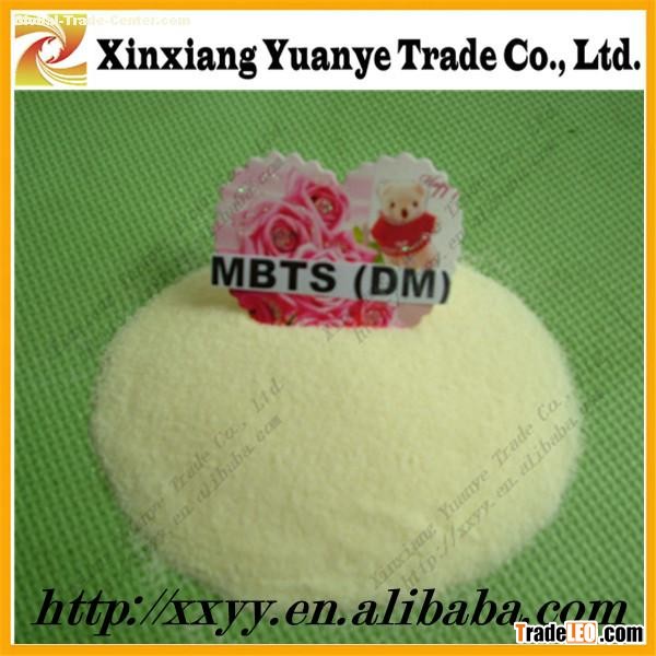 | Properties: Rubber Accelerator MBTS is a little bitter taste. Specific gravity: 1.50-1.59. Soluble in chloroform, slightly soluble in benzene, ethylalcohol and carbon tetrachloride, insoluble in gasoline, water and ethyl acetate, stable in storage. Application: Rubber Accelerator MBTS gives flat, moderately fast cures in NR, IR, SBR, NBR, EPDM, IIR. Also used in a wide range of general purpose rubber. Also Can be used alone as delayed action accelerator, normally with accelerators of guanidines & thiurams. Mainly used in manufacture of tires, tubes, shoes, rubber cloth and other technical rubber goods, especially those special-shaped products demanding high intensity. Exhibits better scorch safety than MBT, non-staining/ non-discoloring in “white” stocks. However, because of the bitterness of the product after vulcanization, it is not recommended to apply it to beverage and food containers. This product can also be used as a plasticiser/ retarder in CR. 20Kg/Bag. Woven bag lined with plastic bags or kraft paper bag. |